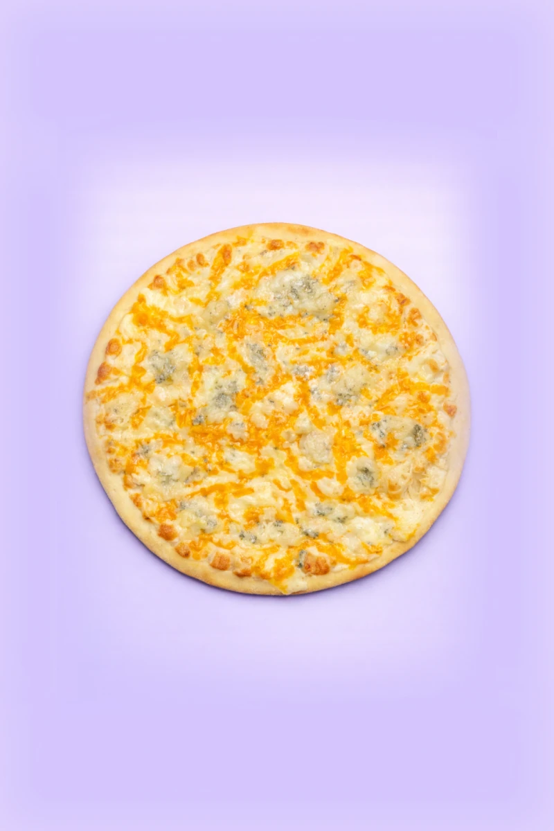 Нежная сливочная пицца с четырьмя видами сыра: моцареллой, пармезаном, чеддером и пикантным дор-блю. Тягучая, ароматная и идеально сбалансированная — настоящий сырный восторг для гурманов.