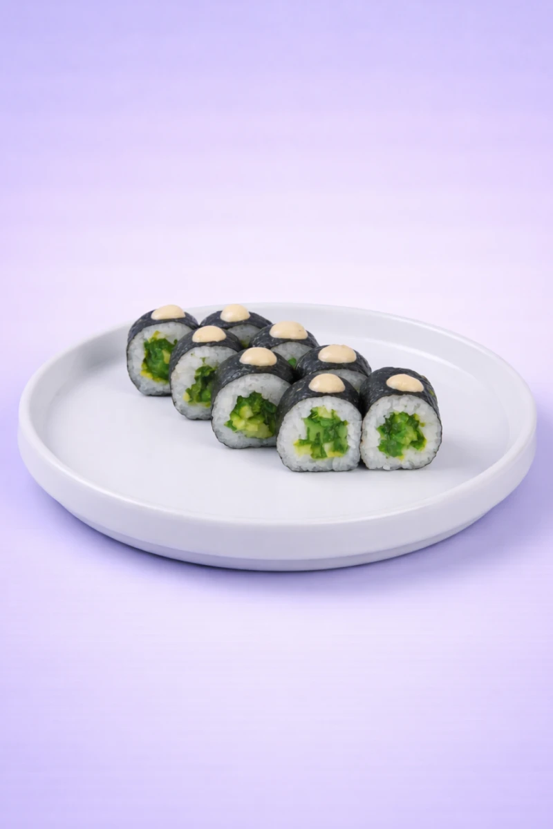 Лёгкий овощной маки-ролл с хрустящим огурцом и морскими водорослями чукка, украшенный миксом кунжута и ореховым соусом. Свежий, ароматный и идеально сбалансированный вкус.
