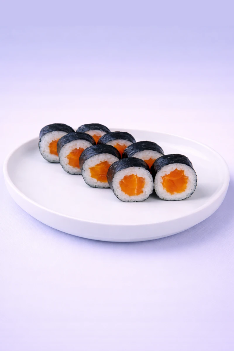 Классический маки-ролл с нежным лососем и рисом в обёртке из нори. Чистый, свежий и идеально сбалансированный вкус — отличный выбор для любителей минимализма.